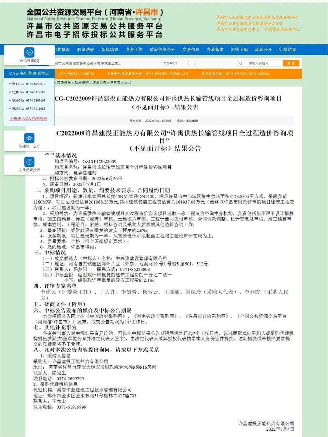 近日,中興豫建設(shè)管理有限公司在“許禹供熱長輸管線項(xiàng)目全過程造價(jià)咨詢項(xiàng)目”招投標(biāo)活動(dòng)中成功中標(biāo)。