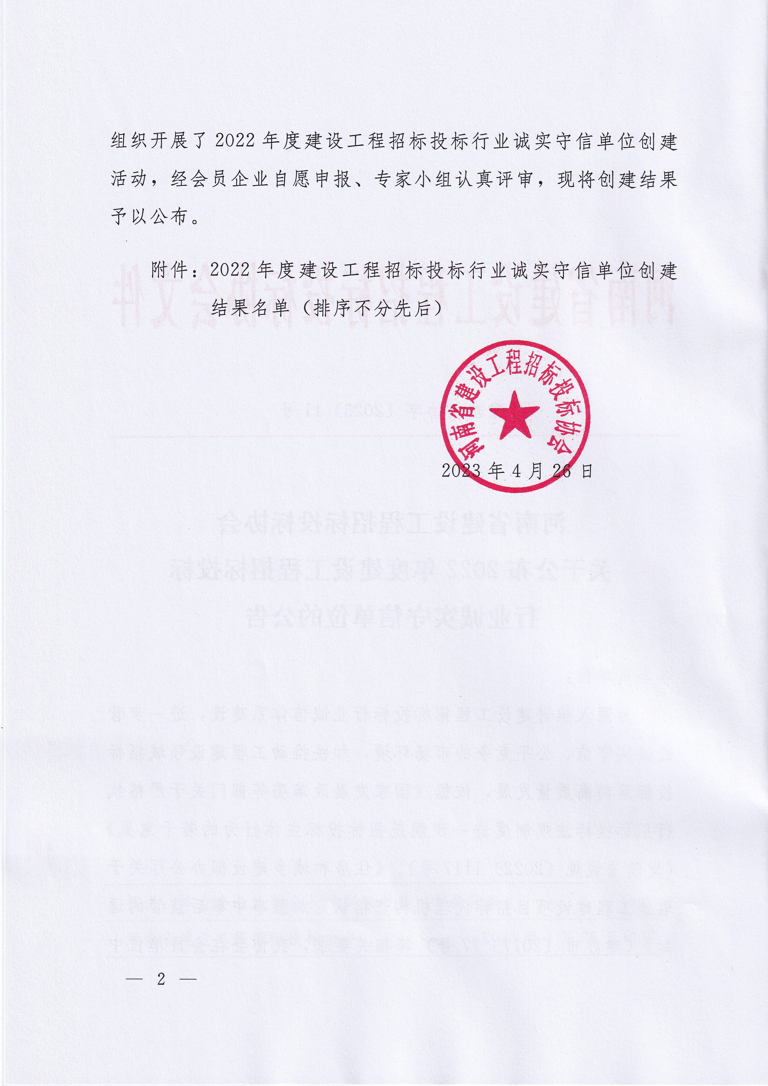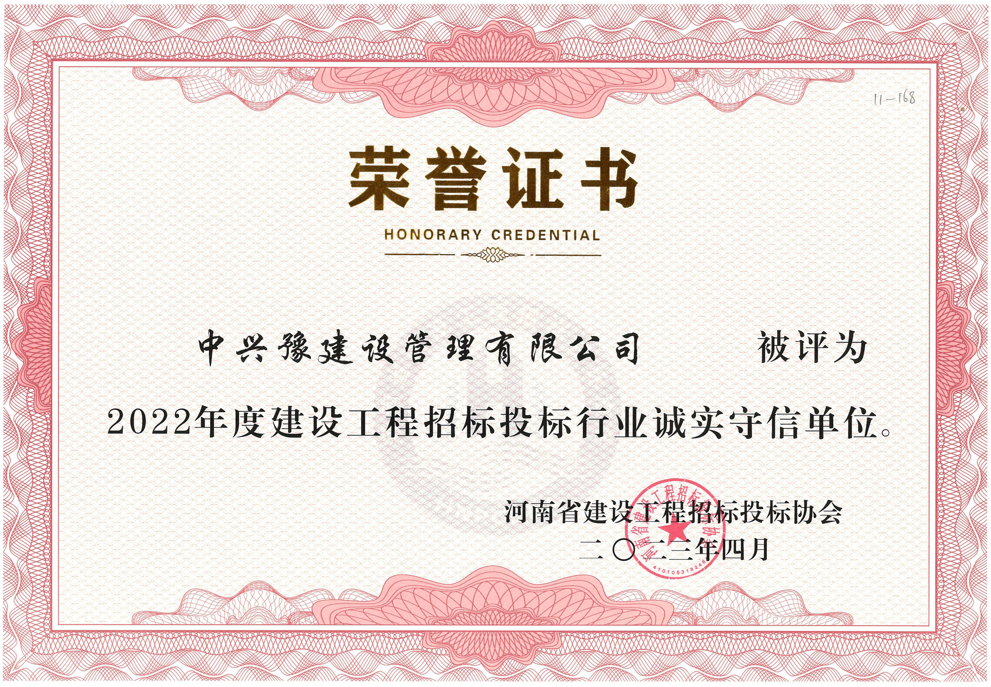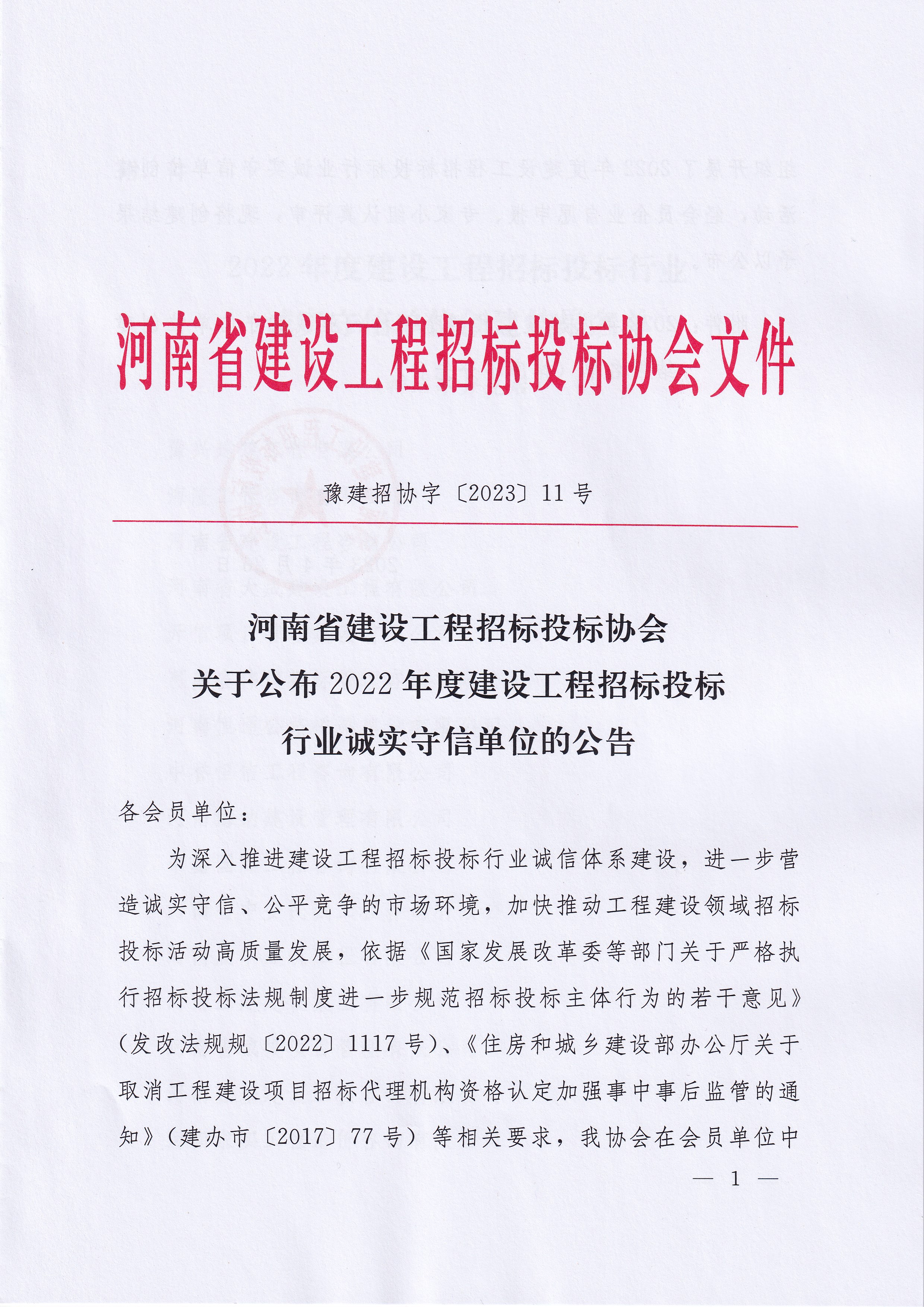 近日,河南省建設(shè)工程招標(biāo)投標(biāo)協(xié)會(huì)發(fā)布了《河南省建設(shè)工程招標(biāo)投標(biāo)協(xié)會(huì)關(guān)于公布2022年度建設(shè)工程招標(biāo)投標(biāo)行業(yè)誠(chéng)實(shí)守信單位的公告》,中興豫建設(shè)管理有限公司被評(píng)為“2022年度河南省建設(shè)工程招標(biāo)投標(biāo)行業(yè)誠(chéng)實(shí)守信單位”。
