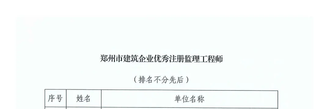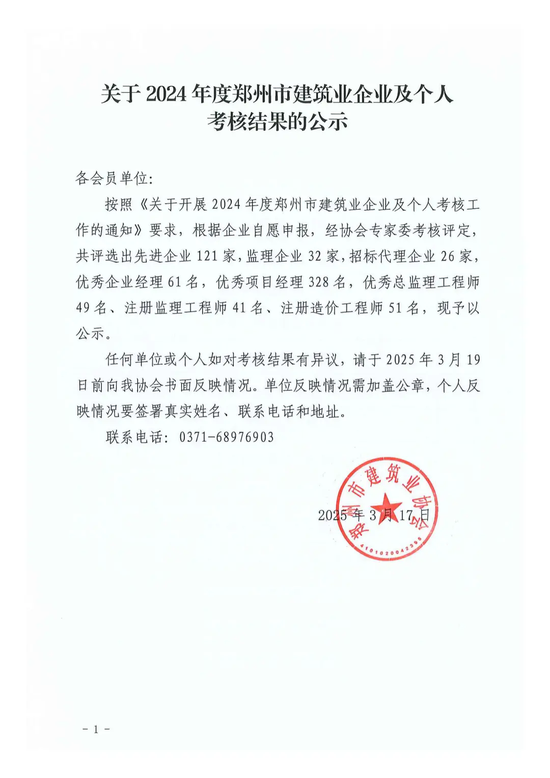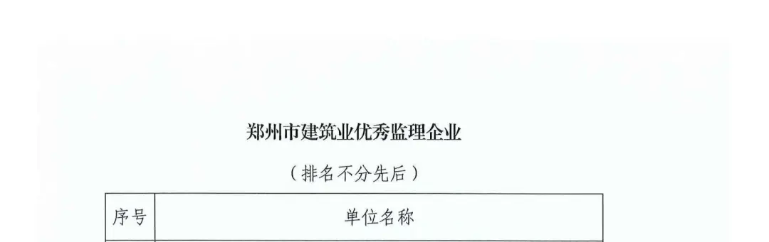 近日,鄭州市建筑業(yè)協(xié)會發(fā)布關于2024年度鄭州市建筑業(yè)企業(yè)及個人考核結果的公示。其中,中興豫建設管理有限公司榮幸入選“鄭州市建筑業(yè)優(yōu)秀監(jiān)理企業(yè)”、“鄭州市建筑業(yè)優(yōu)秀招標代理企業(yè)”。