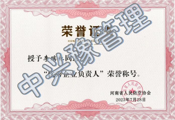 近日,河南省人民防空協(xié)會公布了“關于優(yōu)秀會員單位及個人結果的公告”。經單位申請、專家評估、社會公示等程序,我公司榮獲優(yōu)秀會員單位榮譽稱號,總裁李瑞林榮獲優(yōu)秀企業(yè)負責人榮譽稱號。