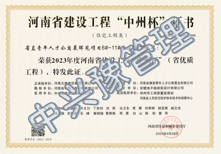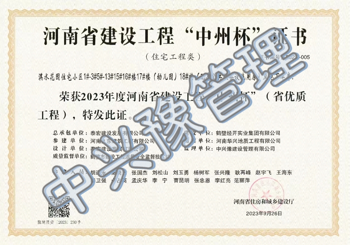 近日,河南省住房和城鄉(xiāng)建設(shè)廳公布了《關(guān)于2023年度河南省建設(shè)工程中州杯(省優(yōu)質(zhì)工程)的通報》。中興豫建設(shè)管理有限公司監(jiān)理的淇水花園住宅小區(qū)1#-3#5#-13#15#16#樓17#樓 (幼兒園) 18#樓(配套公共服務(wù)設(shè)施用房)及地下車庫項目和省直青年人才公寓晨暉苑項目6#~11#樓及地下車庫項目榜上有名。