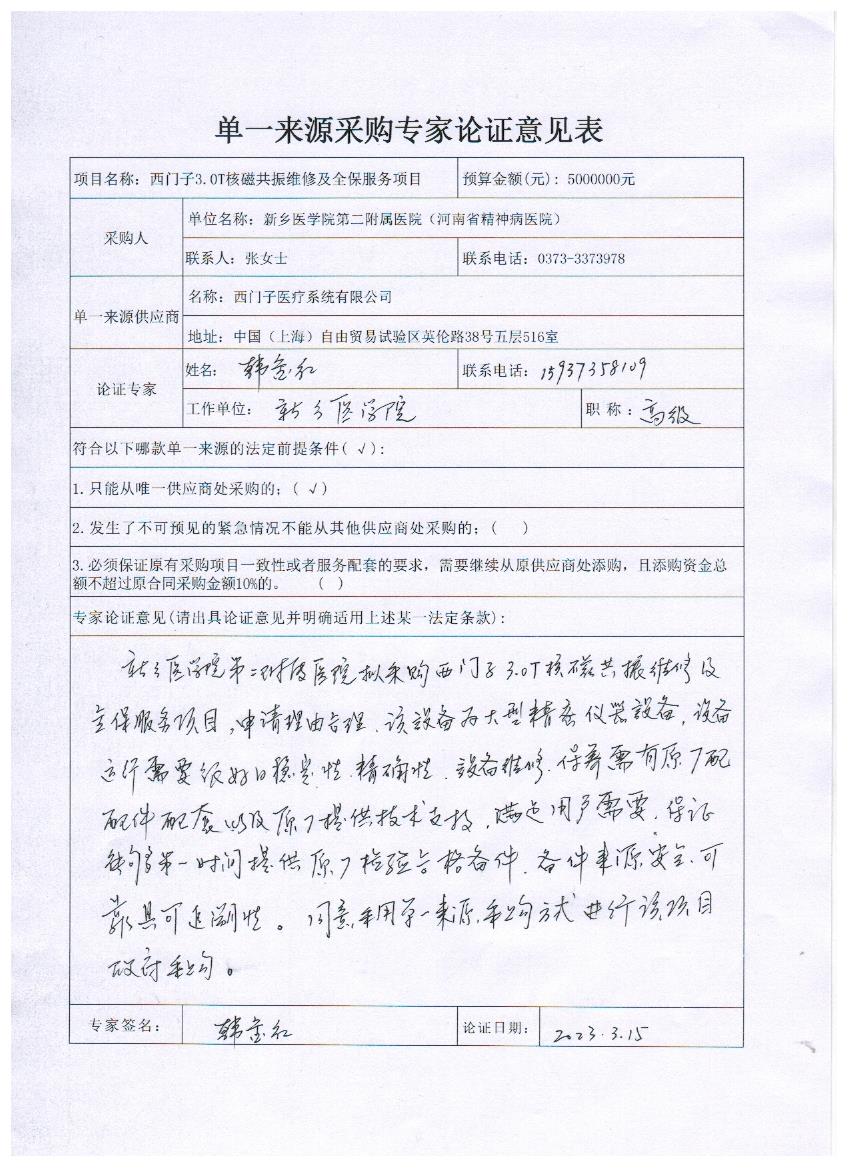目前其他廠家的配件不能完全兼容,無(wú)法完全匹配使用。儀器的維修服務(wù)需具有特定的技術(shù)能力,為確保服務(wù)的質(zhì)量,擬由原廠提供維修、全保服務(wù)。為保證設(shè)備正常運(yùn)行,提高開機(jī)率,保證對(duì)病人診治工作的正常開展,擬采用單一來(lái)源的方式進(jìn)行采購(gòu),符合政府采購(gòu)法單一來(lái)源采購(gòu)條件。