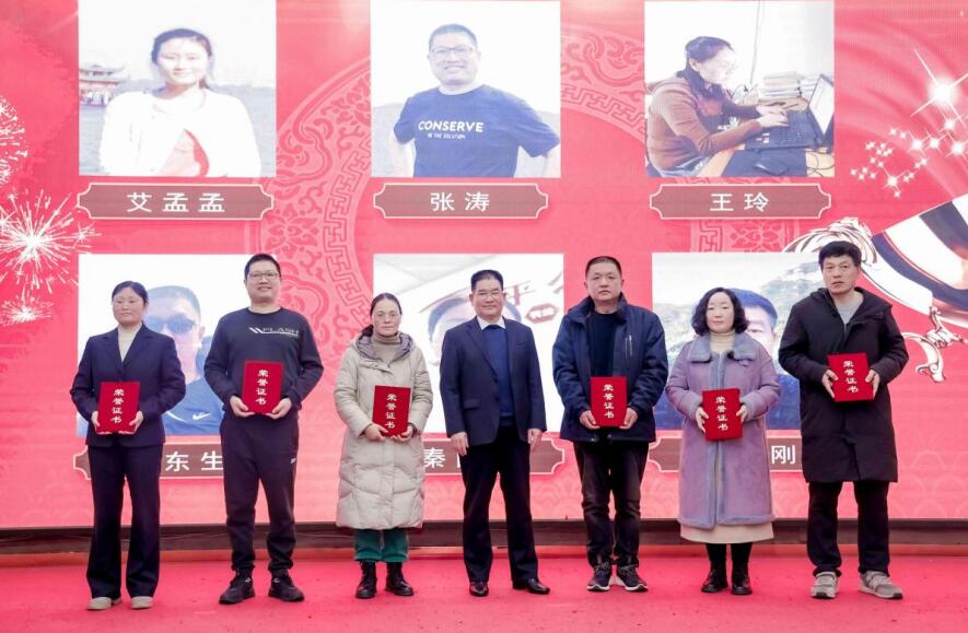 在熱烈的掌聲中,公司董事長劉秒向先進(jìn)集體代表頒獎,公司總裁李瑞林向先進(jìn)工作者代表頒獎。
