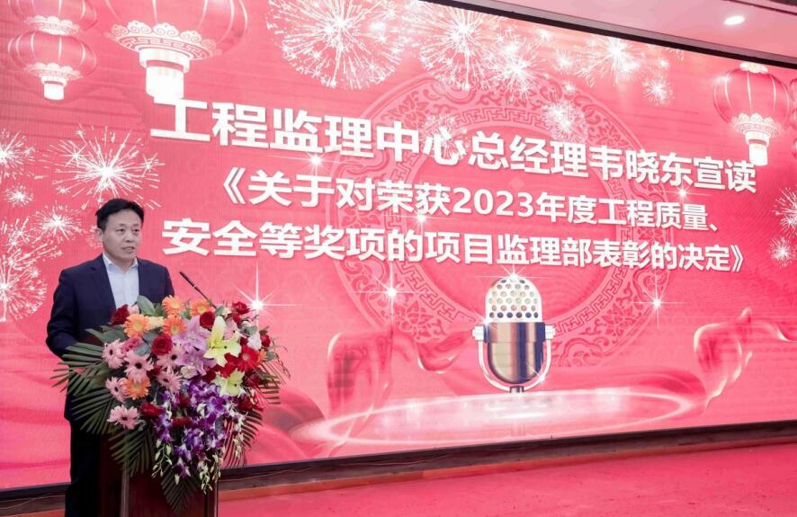 隨后,工程監(jiān)理中心總經(jīng)理韋曉東宣讀《關(guān)于對榮獲2023年度工程質(zhì)量、安全等獎項的項目監(jiān)理部表彰的決定》。