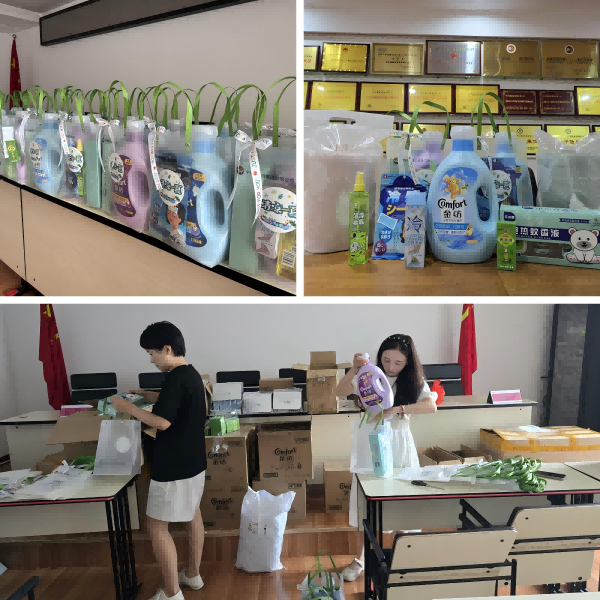 發(fā)放現(xiàn)場,行政管理中心的工作人員早已將物品整理分裝完畢,整齊擺放的物資傳遞著無聲的暖意,靜候各部門員工領(lǐng)取。大家有序排隊,臉上洋溢著欣喜的笑容。