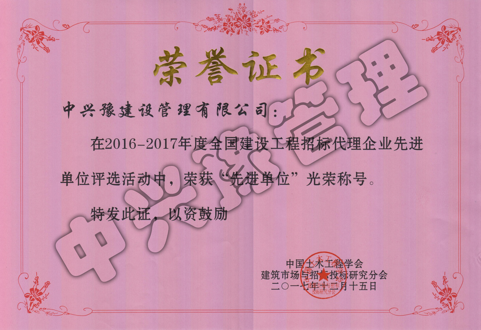 2016-2017年度全國招標(biāo)代理企業(yè)先進(jìn)單位-公司榮譽(yù)