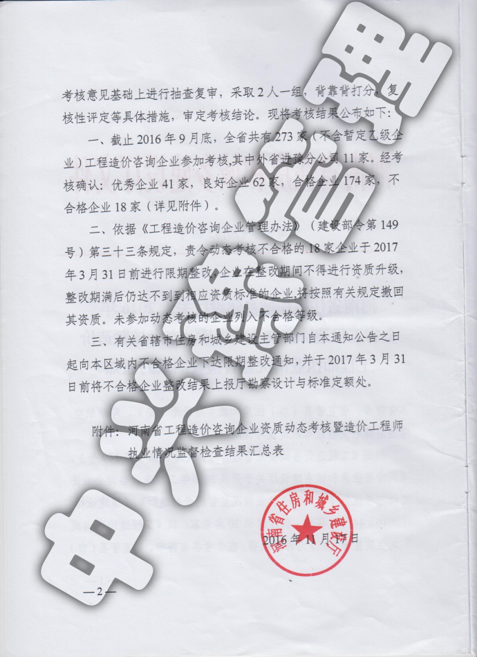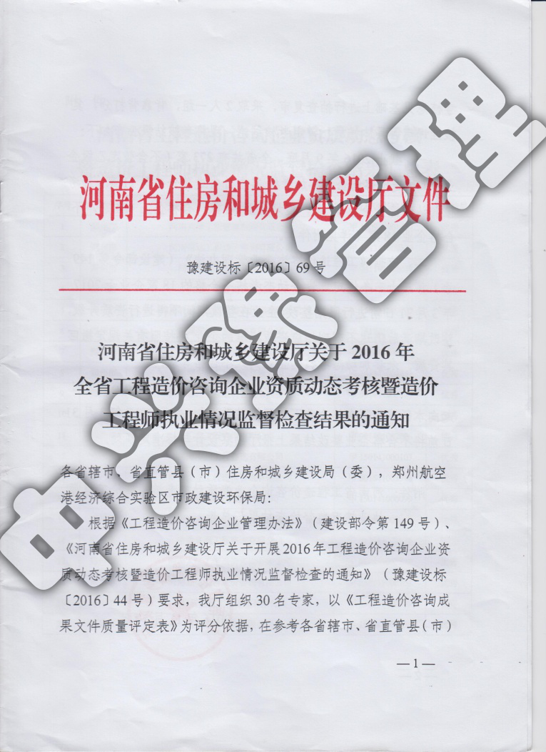 2016年河南省工程造價動態(tài)考核優(yōu)秀企業(yè)-公司榮譽